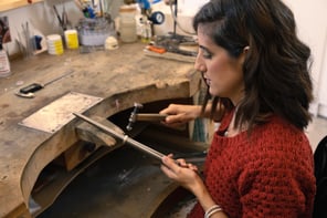 In ihrem Atelier schmiedet sie in 100% Handarbeit Schmuckstücke aus nachhaltigen Edelmetallen, Repariert oder arbeitet Schmuck um. Ebenfalls bietet sie private Schmuck-Kurse an, in denen mit ihrer Unterstützung und Betreuung ein eigenes geschmiedetes Schmuckstück entsteht.